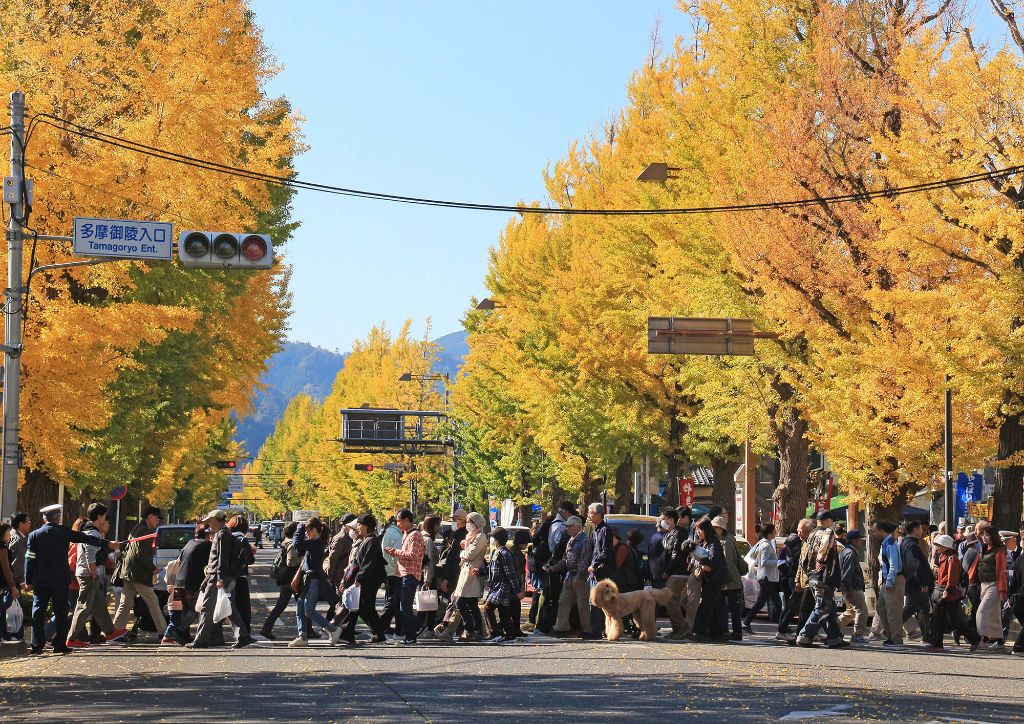 昭和2年から4年にかけて、八王子市追分町交差点から高尾駅入口まで、約4kmにわたる甲州街道(国道20号)の両側に、大正天皇陵造営の記念樹として約770本のいちょうの木が植樹されました。以来、季節に応じてそれぞれの風景で街を彩り、秋になると特に美しく黄葉し、道行く人の目を楽しませてくれています。