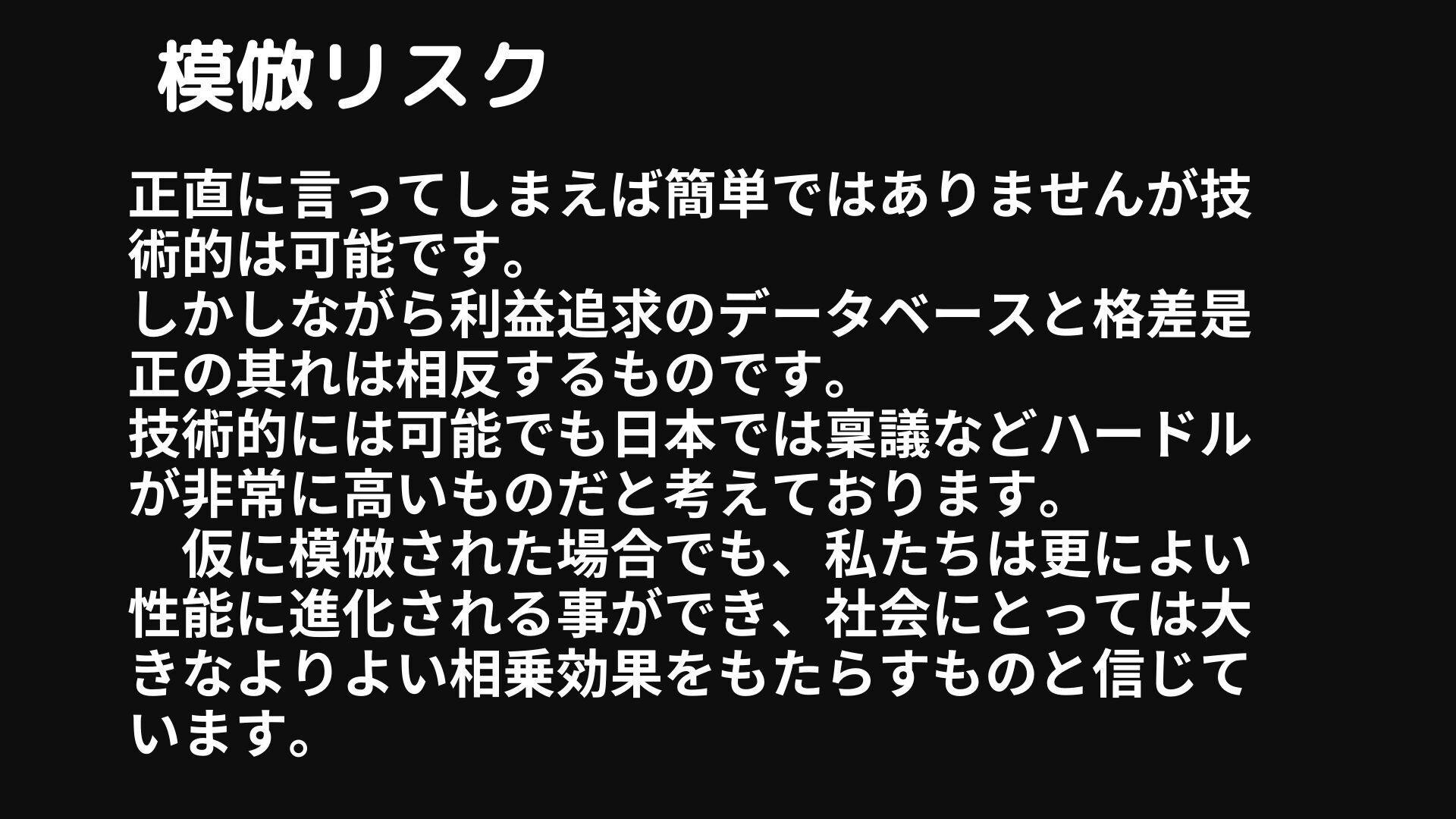 開発には多くの技術やアルゴリズムが必要で100%支援者の方々がイメージされるサービスにならないかもしれません。
