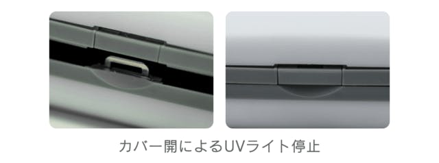 除菌中にカバーが開けば、UVライトがOFF になります。人体に有害なUVライトが照射される心配はありません。万が一、除菌中に開いたり、小さいお子さんがいても安心・安全です。