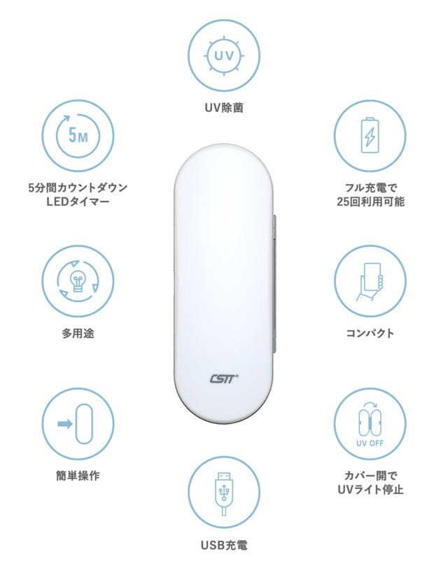 2種類のUV-LED照射とプラズマイオンで徹底除菌!充電式で持ち運べるコンパクトさ!