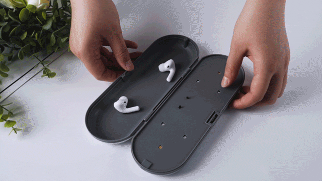 除菌コンパクトは、紫外線とプラズマイオンで除菌を行うため水洗いや高温除菌ができない電子機器の除菌が可能です。衛生状態が気になるイヤホンや化粧ブラシ、アクセサリーなども除菌できます!ケースに入る多様なアイテムの除菌に対応しています!