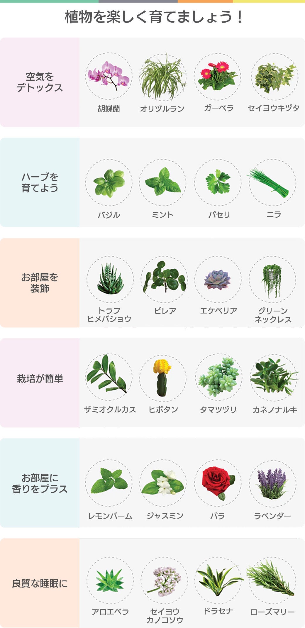 ご支援頂いた皆様、誠にありがとうございます!さっそく、「どういった植物を育てられますか?オススメの植物を教えてください!」というご質問を頂きました。わかりやすく表にまとめましたので是非皆様ご参考にしてみてください!それでは引き続き応援のほどよろしくお願いいたします。