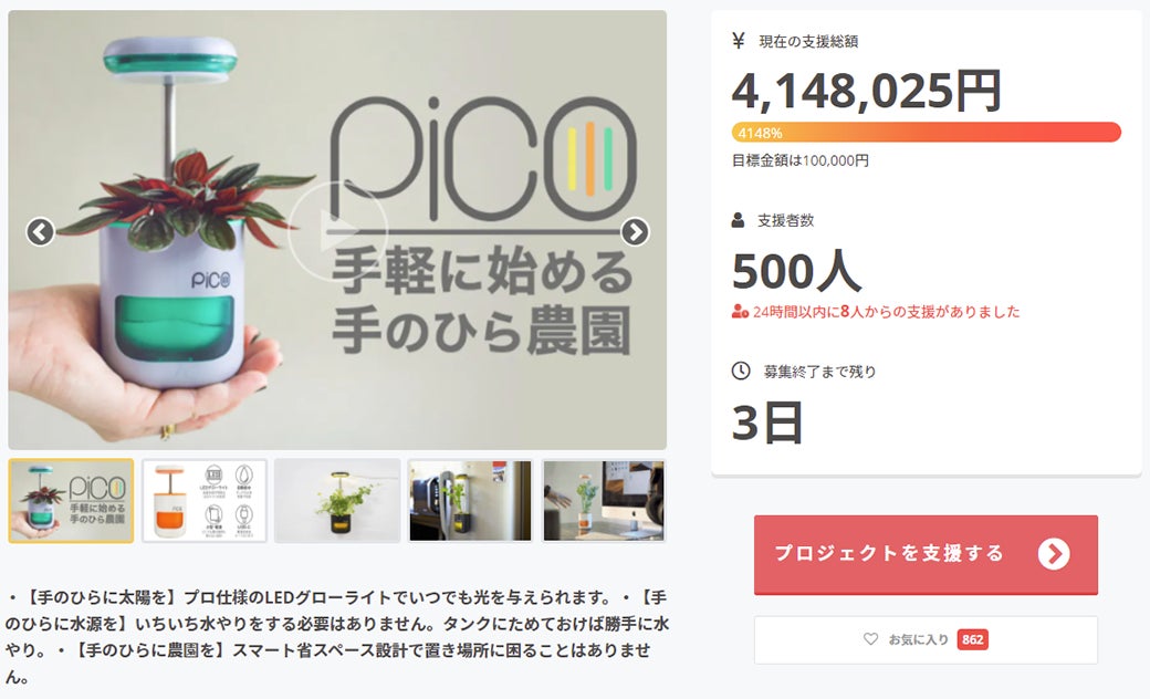 手軽に始める手のひら農園【PICO】の先行販売キャンペーンも残り3日となりました。