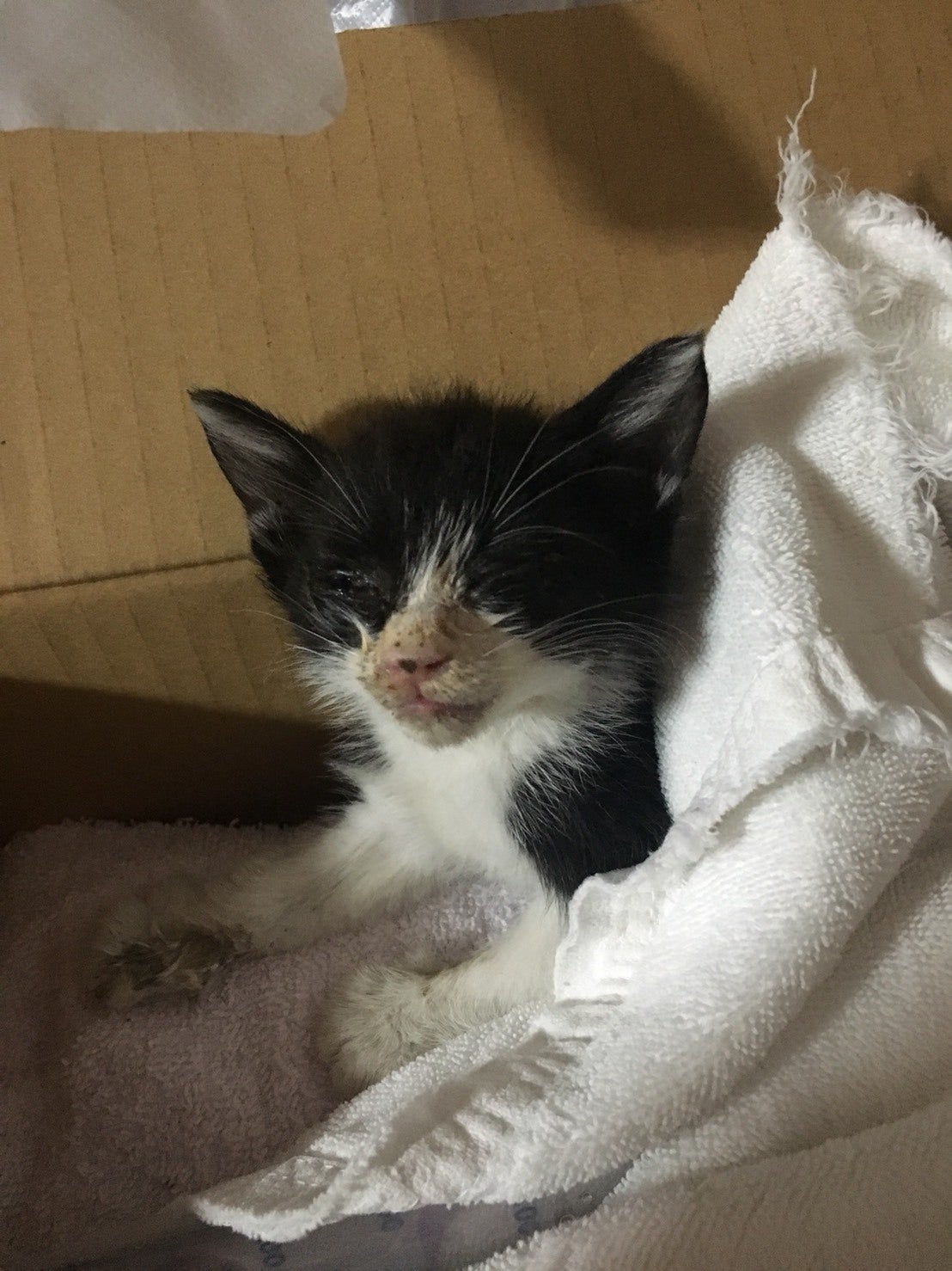 捨てられた仔猫を保護し病院に連れて行き里親様が見つかるまで育てる。