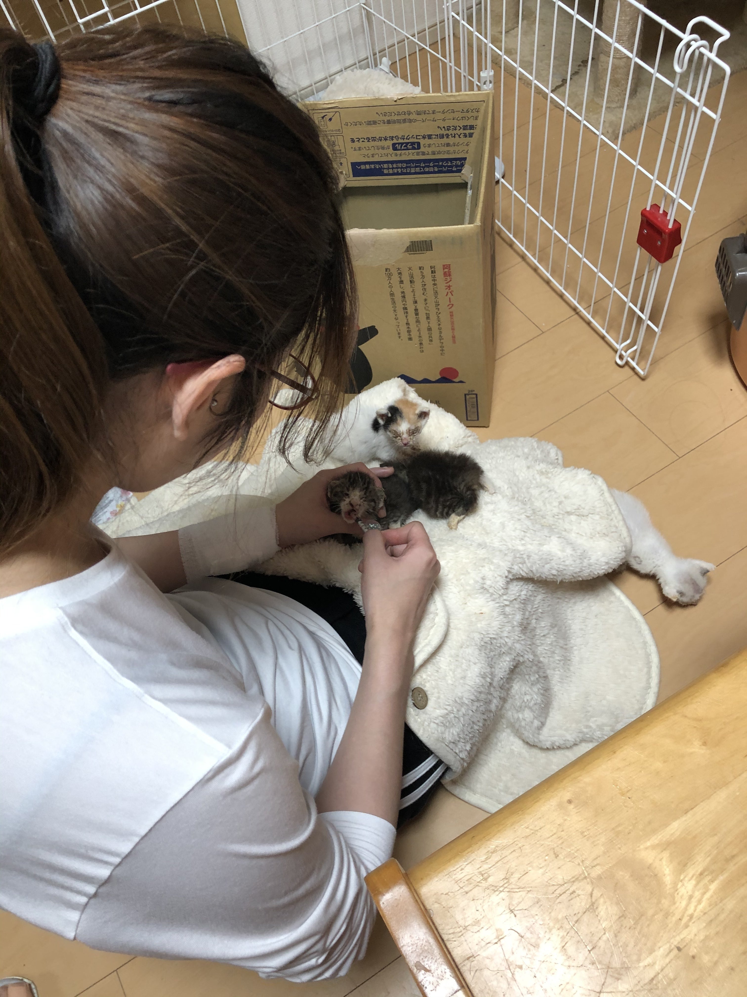 今では地域のボランティアさんに色々と指導してもらい乳飲み子のミルクボランティア、少し大きな仔猫の預かりボランティアなどをしています。