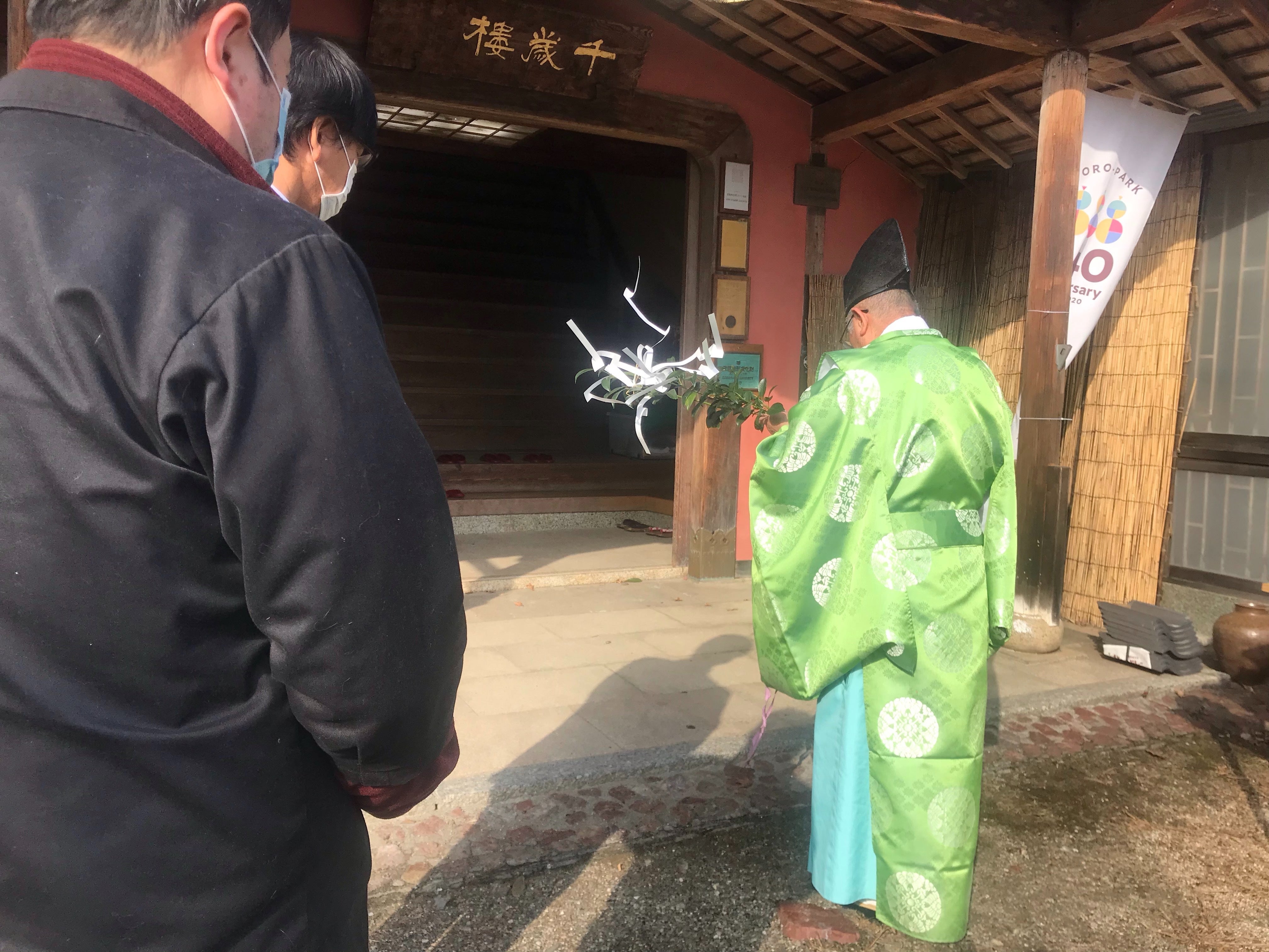 2021年1月13日今日の養老公園は晴天で気持ちの良い朝でした。本日、お風呂工事の地鎮祭を行いました。いよいよお風呂工事が始まります。3月末までには完成の予定です。どんなお風呂ができるのかとても楽しみでドキドキです。
