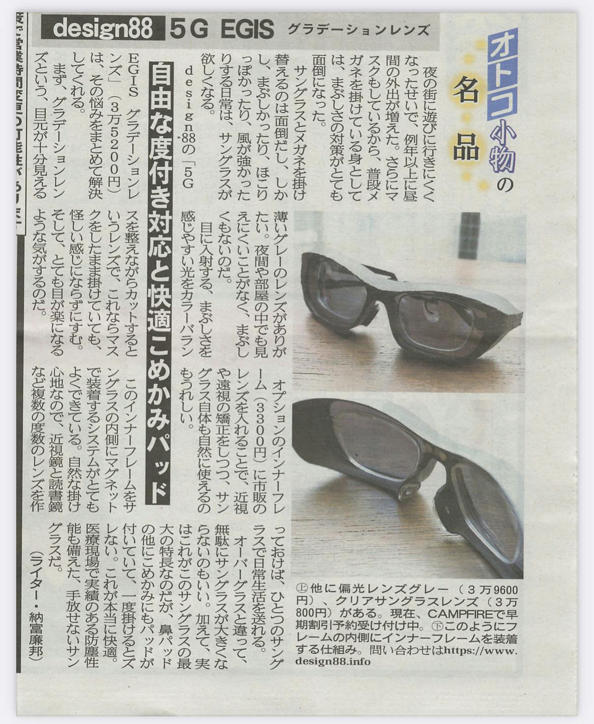 発売前のサングラスが新聞に掲載されるのは稀な事です。