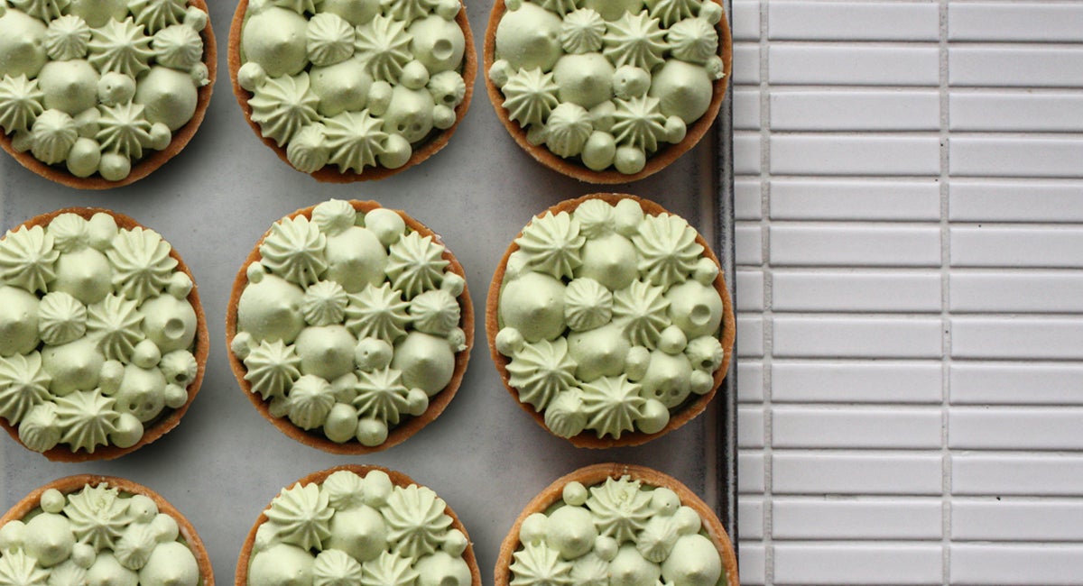 柚子の酸味のインパクトを柔らかく優しい風味に仕上げた抹茶ムースが包み、意外な組み合わせを楽しんでいただけます。芽吹く苔をイメージした数々の絞りが印象的な春のタルトです。