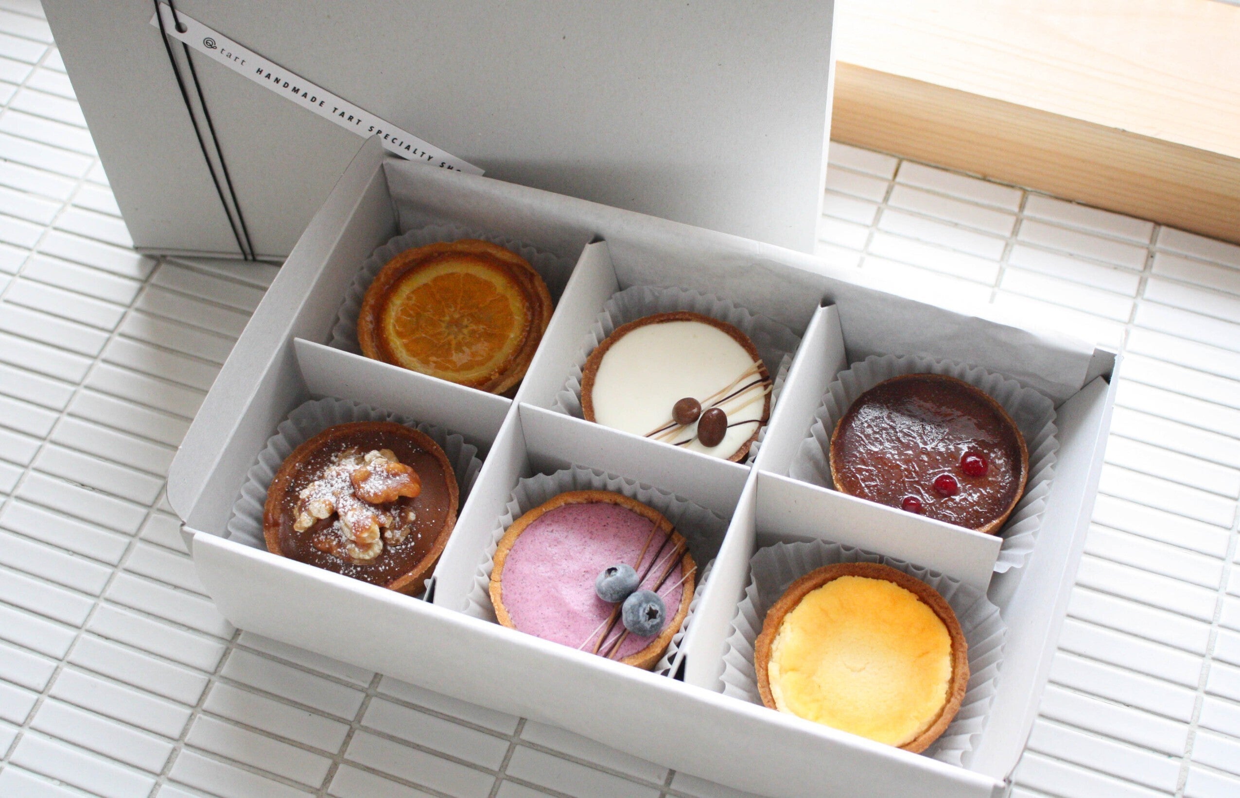 さっぱりとした果肉いっぱいのブルーベリータルトと濃厚なマスカルポーネのティラミスタルト。対局の2つのフレーバーはとっても楽しいです。