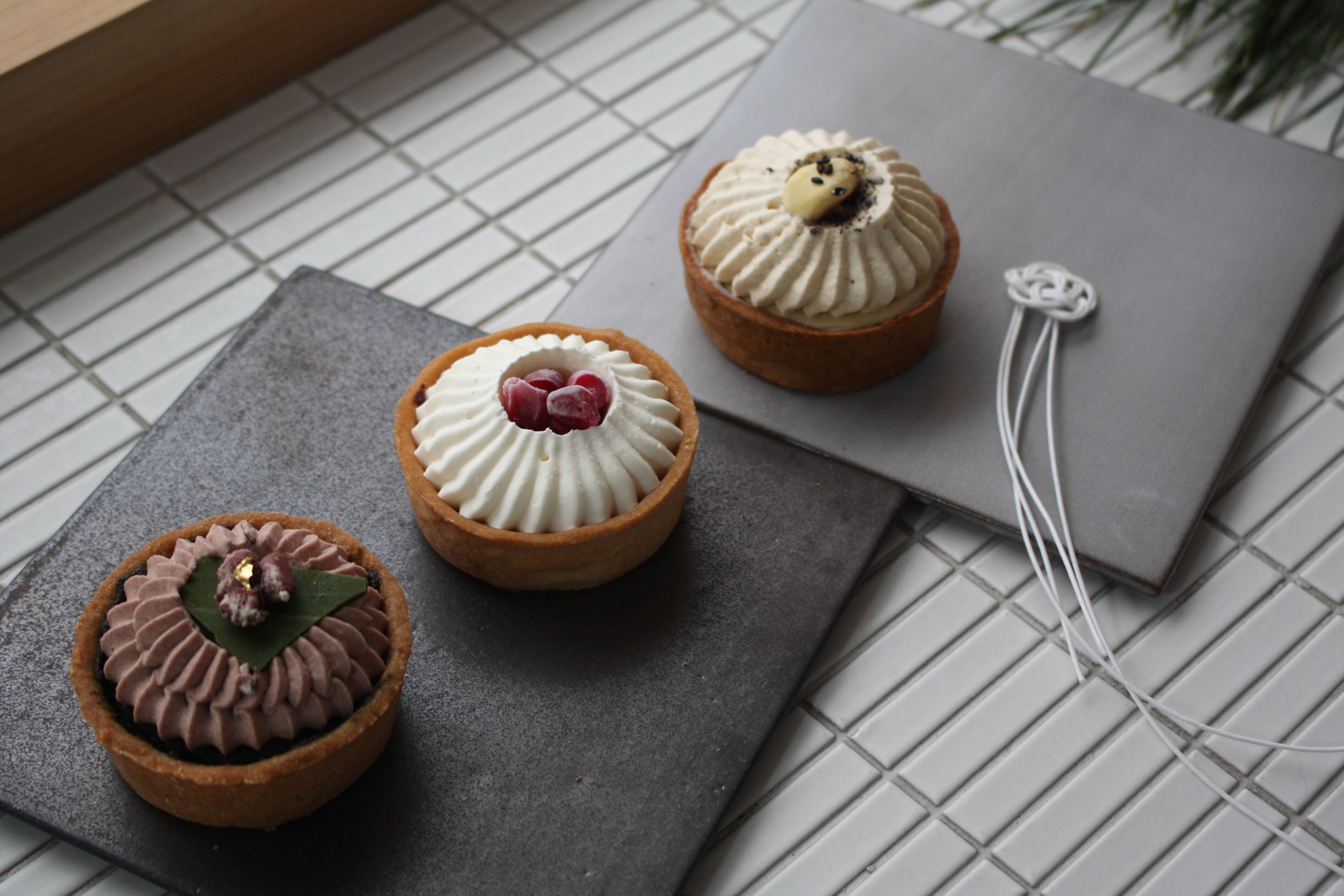 クラウドファンディング商品は限定ものと定番商品でリターンをご用意いたしましたが、本日の活動報告は、大名古屋マルシェの【オープニング限定和タルト】の先行発表です。お写真は2021年4月28日の営業開始と同時に2週間限定発売される「和タルト」です(5月11日まで)。オープニング期間のみの数量限定で登場いたします。(大名古屋マルシェ限定です)おたのしみに!◎栗きな粉(右)抹茶ガナッシュと栗を入れたきな粉ムースに黒蜜クリームを絞りました。黒ごまと栗の甘露煮をのせたタルト。◎抹茶小豆(左)小豆と抹茶の生地を焼き上げたクレームダマンドにこし餡クリームをしぼり、抹茶チョコと小豆、金箔で飾ったタルト。◎日本酒チーズ(中)酒粕入りのアーモンドクリームを焼き上げ、日本酒を混ぜたクリームチーズの絞りとザクロ飾ったタルトです。※お酒を使っていますお持たせギフトボックスもご用意しております。みなさまの暖かいメッセージがとても励みになっています。引き続き応援の方よろしくおねがいします。
