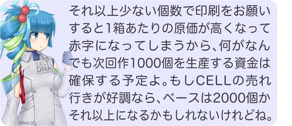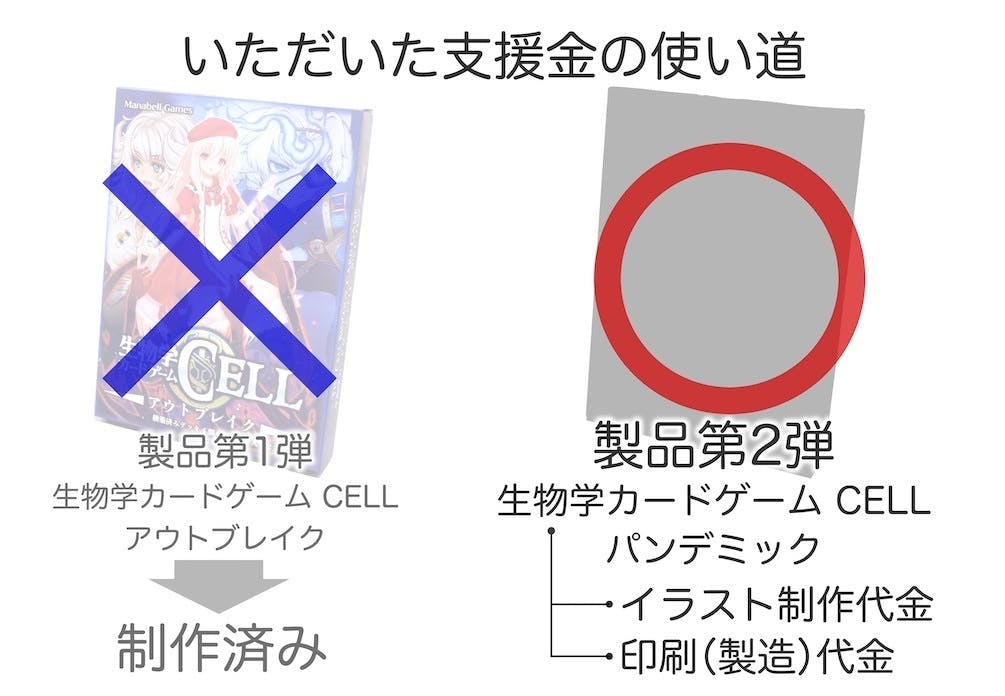 2020/11/16 19:57生物学カードゲーム CELLのクラウドファンディングが、11月15日をもってご支援の募集を終了いたしました。総支援者数152名様、総支援額834,000円を集め、目標額500,000円の166%を達成することができました。 また、総支援額800,000円に設定したストレッチゴールも達成し、次回製品「生物学カードゲーム CELL パンデミック」のイラストレーター報酬額が1,000円アップ、生産個数が100個アップすることになりました。 また、クエン酸回路暴走メソッドの支援件数が10件を超えて11件となり、次回製品「生物学カードゲーム CELL パンデミック」のイラストレーター報酬額が500円アップし、合計1,500円アップすることになりました。 沢山の方々からのご支援と、宣伝・拡散のご協力を賜り、本クラウドファンディング企画は大成功を収めることができました。皆様に心よりお礼申し上げます。本当にありがとうございました!■売上数のご報告 「生物学カードゲーム CELL アウトブレイク」は、ゲームマーケット2020秋に2日間出展参加し、合計120箱を売り上げました。また、本クラウドファンディングでは合計185個の出荷が確定し、その他の13箱の出荷と合わせて、合計318箱を売り上げました。 今後はamazonなどでの通信販売、小売店様での販売、プレイ体験会での販売を予定しております。 もっと見る