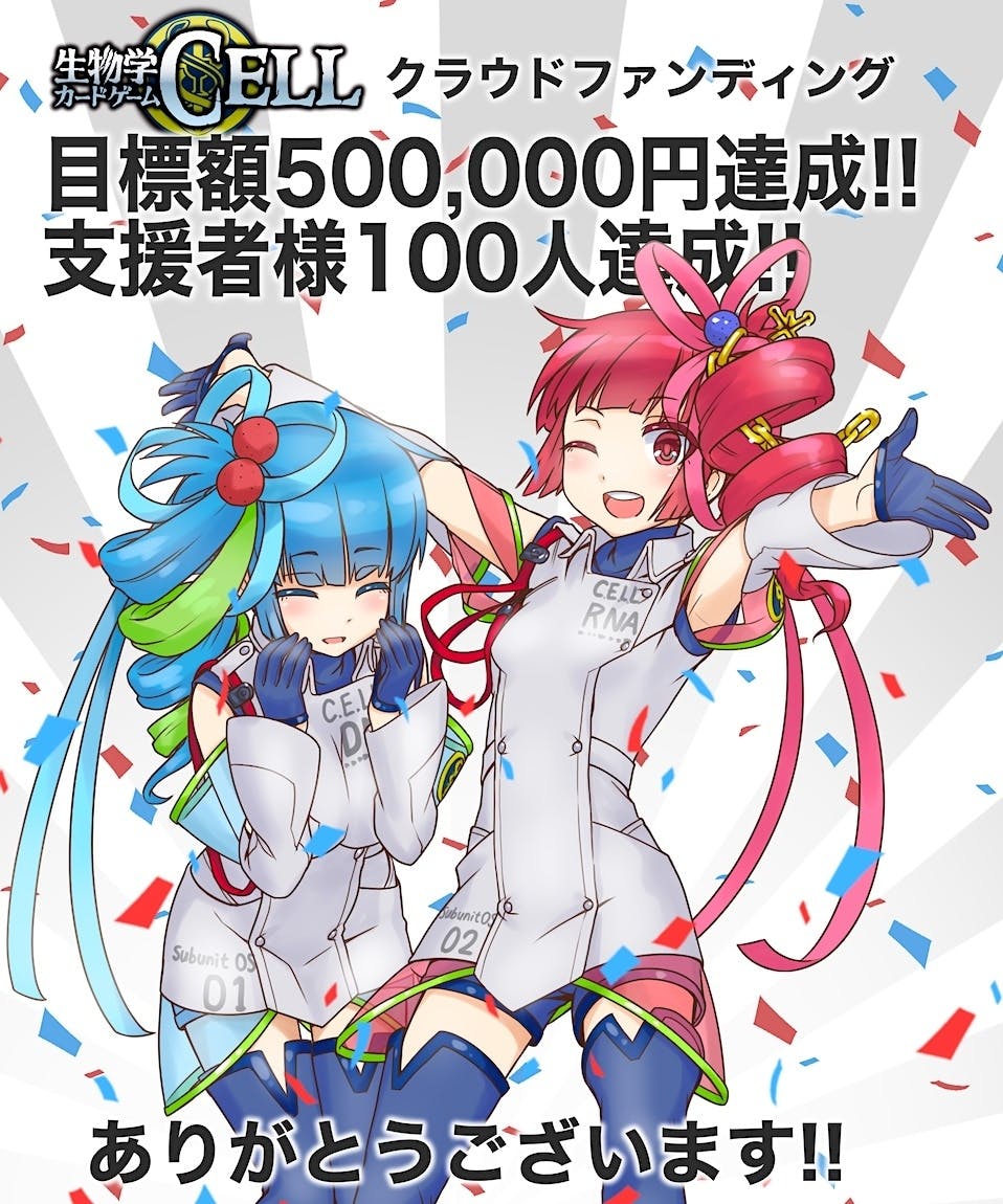 おかげさまで目標額の500,000円を達成し、支援人数も100名様を達成いたしました! 支援いただいた皆様、そして宣伝、拡散いただいた皆様、本当にありがとうございます! 多くの方々にCELLというコンテンツを応援いただき、スタッフ一同、大変嬉しく思っております。心よりお礼申し上げます。