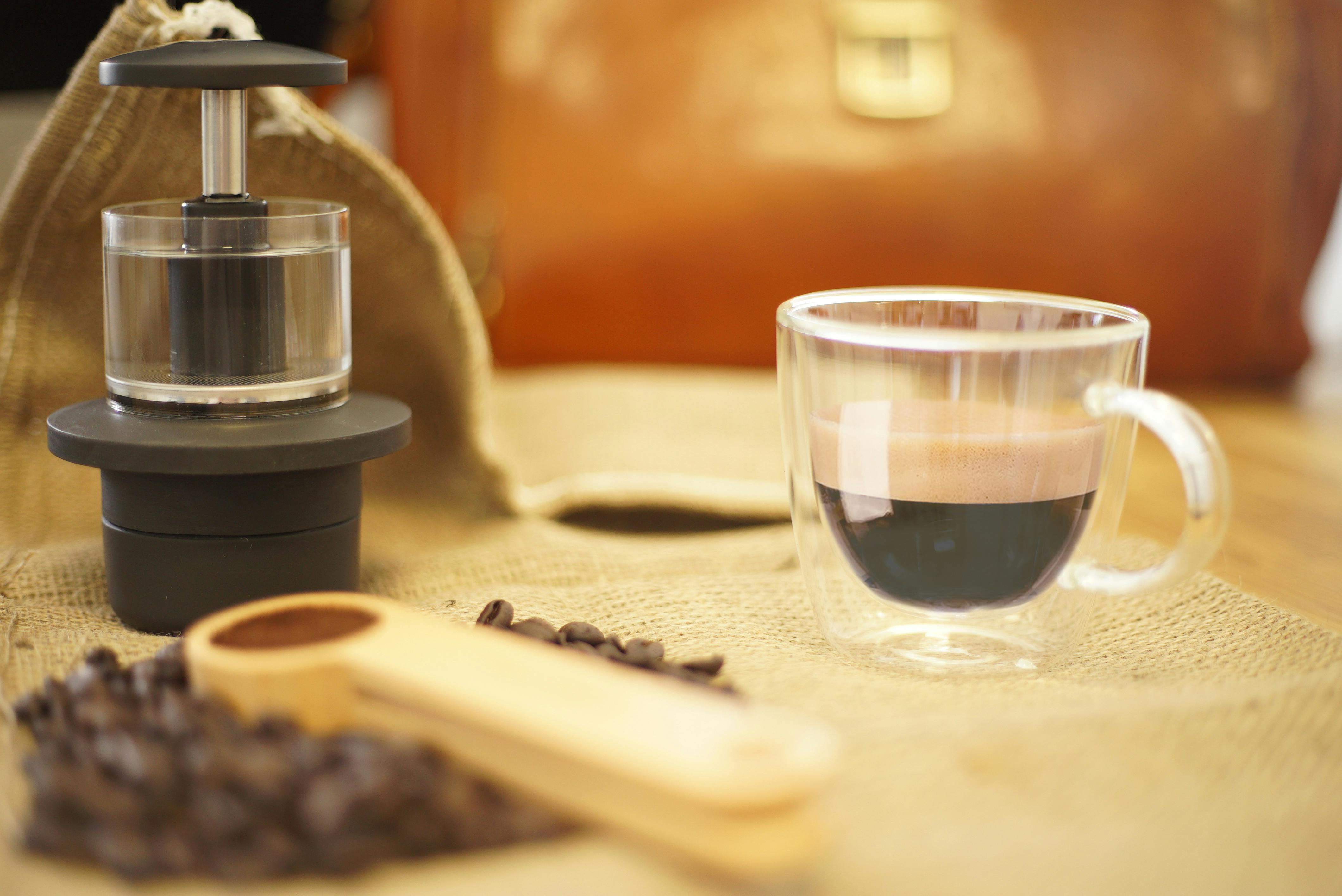 COFFEEJACK™は9バールを超える圧力。持ち運びに便利で、わずかなコストで高品質のエスプレッソコーヒーを醸造できます。コーヒーを作る別の方法はもういりません!