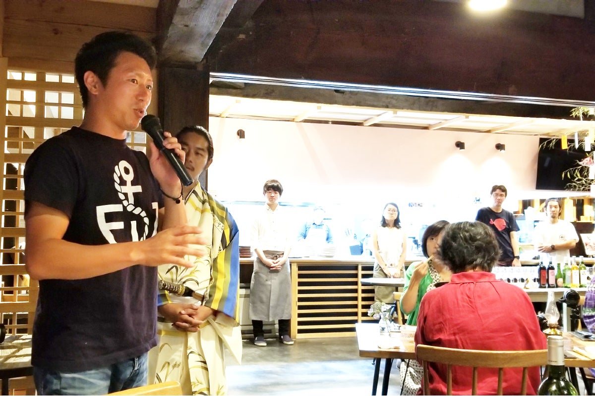 さらに、それは食の体験として素晴らしいだけでなく、生産者と参加者の心が通う場でもあります。例えば、テロワージュ東北のワイン会では、参加者と同じテーブルに、まさにそこで供される食材を水揚げした漁師さんが座っていたりします。漁師さんにとっては、自分が水揚げしたものを実際に誰かが食べている姿を見る機会はほとんどありません。しかし、実際に参加者が食べて喜んでいる姿を目の当たりにすると「これまでやってきて本当によかった」という心の底からの言葉が、漁師さんから出てくるのです。そんな漁師さんから、漁業の話や震災からの再建の話を聞いて、涙を流し始める参加者の方もいます。黒子として立ち回るシェフにまで、美味しかったよ!と自然と拍手が巻き起こる。その場が感謝と感動で包まれる、とても幸福な時間です。