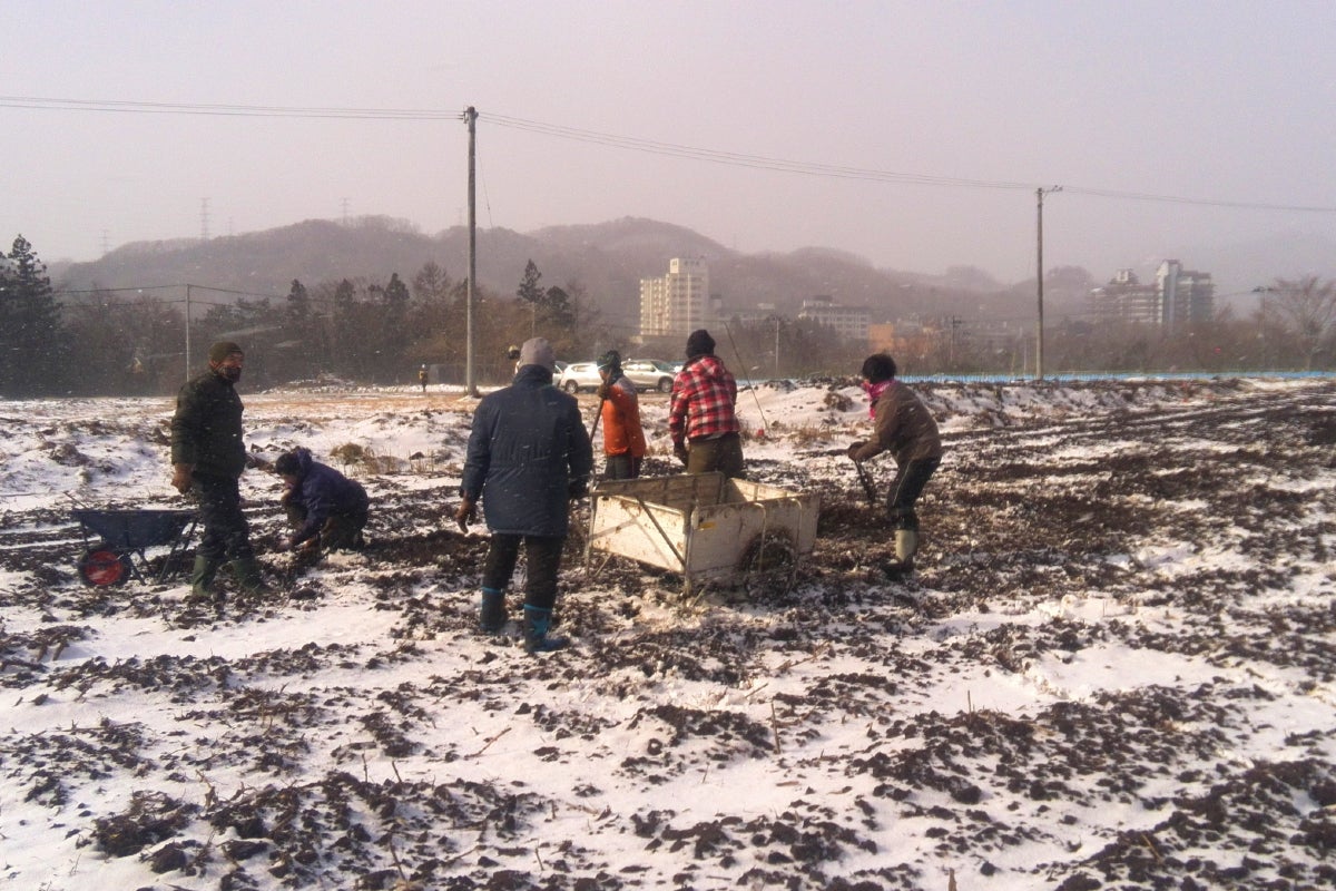 2014年当時といえば、ワイナリーを軸に食とツーリズムでにぎわい創出をやるぞ、という壮大なプランはあっても、まだワイナリーの建物もなければ社員もいない状態です。純粋に人手としてのボランティアを必要としていました。そんな時、三菱商事の復興支援財団に支援していただけることになり、三菱商事グループやその関連会社の社員の方々にボランティアに来ていただきました。山だったところを農地として整備していくわけですから、木枝を伐採したり、地中に埋まった木の根を掘り出したりと重労働です。しかし、私が語る夢にみなさん賛同してくださり、「ここから東北の新しい産業が生み出されるんだ」と明るく作業してくださったのを覚えています。