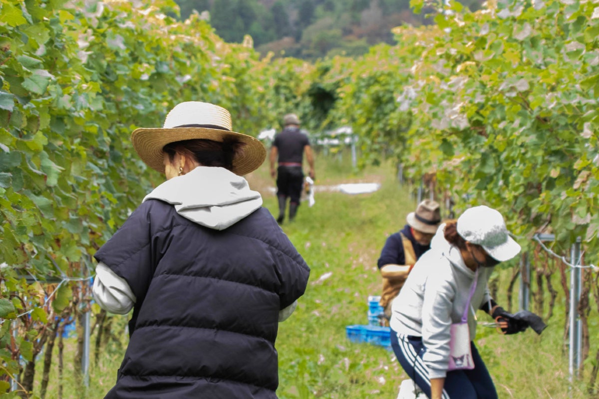 この時に足を運んでくださった方々は、会社としての支援活動が終わったあとも、2ヶ月に1度くらいのペースで車を乗り合わせて訪れてくださり、雑草取り、収穫などの農作業から、仕込み、瓶詰め、ラベル貼りといった製造に関わる作業まで一緒に行ってきました。その他にも、東京での物産イベントなどがあるときには、一緒に販売をしてくれたり、知り合いの飲食店を紹介してくれて、実際にそのお店でワインを使ってくれるようになったこともあります。まさに、一緒にワイナリー作りをしているような感覚です。