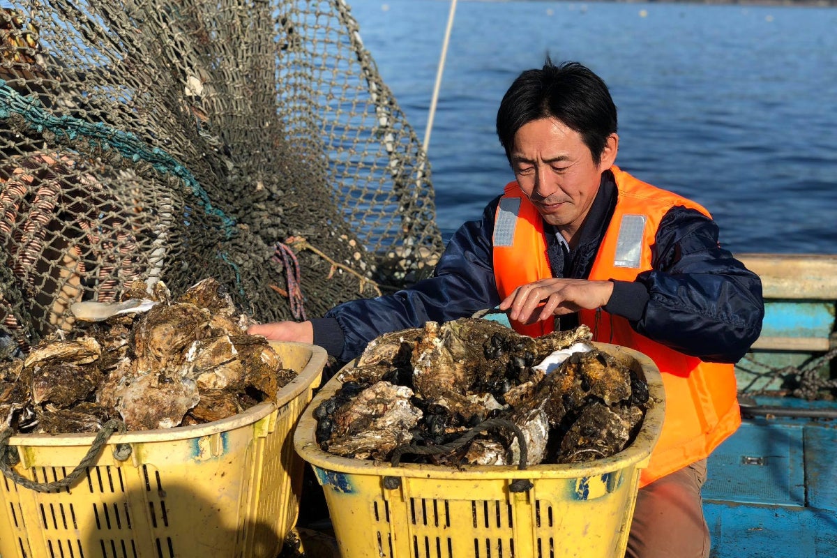宮城県といえば、日本有数の水産県。なかでも牡蠣は広島に次いで第二位の生産量を誇り、特に生食用の牡蠣といえば宮城県と言われています。そんな宮城県でも、高齢化や東日本大震災の影響により、牡蠣生産者の数はここ10年で半減し、衰退の一途を辿っています。しかし、世界に目を向けると、フランスで養殖されている牡蠣は、実は宮城のマガキの種を持ち込んだものであったり、サンフランシスコの魚市場でもMIYAGI OYSTERというブランド名で売られていたりします。(調べてみると1925年以降に宮城県から大量に輸出された牡蠣の子孫である事が分かりました)それだけ、宮城の牡蠣は世界で十分に戦えるポテンシャルがあるのです。さらに、海外に販路を拡大することで、日本の牡蠣養殖のビジネスモデルを変えることもできます。日本では牡蠣を出荷するのは秋から冬にかけてのみ。4〜5月を過ぎると牡蠣は産卵に備えて抱卵してしまうので、食べないのが当たり前とされています。しかし、アメリカやヨーロッパなどの欧米諸国では、日本のように冬期に限らず、牡蠣は一年中食べられているのです。また、むき身で出荷する文化のある日本では、牡蠣を出荷するまでに非常に手間がかかりますが、海外であれば殻付き牡蠣が一般的です。水揚げしたものを殻のまま急速冷凍して輸出するという方法であれば、生産者の手間も削減できます。そこに目をつけた高田社長は、「MIYAGI OYSTER PROJECT」を立ち上げ、中東や東南アジアに宮城の牡蠣を輸出することに成功し、生産者の所得増加に貢献されています。