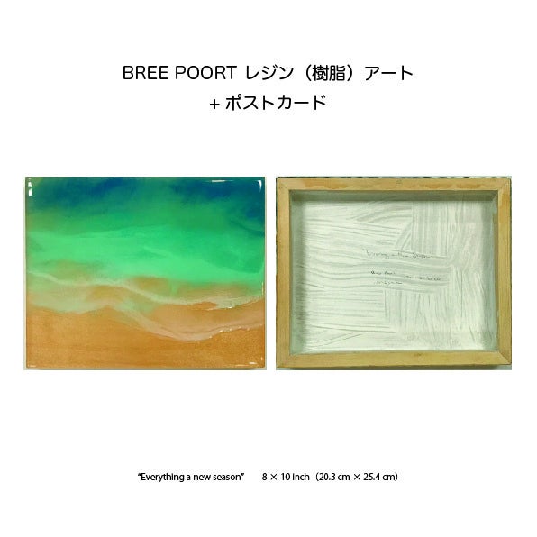 オアフ島ノースショアを拠点に活躍するアーティストブリー・ポート。大学でアートを学び始めるまではカリフォルニア州サン・クレメンテで育つ。卒業直前の2016年に本格的にレジン(樹脂)を使用した作品のキャリアをスタート。現在は島中のローカルカフェやギャラリー、店舗で販売されている。過去にはAdidasと共に女性チャリティーイベント用のシューズのデザインや、サーフボードのペイント、約3平方メートルの壁画など様々な仕事をしてきた。レジン作品は彼女自身の目で見た海を描いており、ドローンを使用した上空からの景色やサーフィンをした時にみた色からインスピレーションを受けている。作品では5-7層ほどのレジンをペイントし、仕上げのグラスをコーティングすることによって深みや質感を与えている。彼女は作品をみたときに心に平和や透明性を感じてもらえることを願っている。