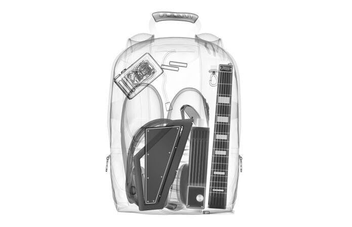 Jammyはどこへでも持ち運べるデジタルトラベルギターです。分解時はわずか17inch(約43cm)、組み立て時は27inch(約68cm)で、非常にポータブルで、バックパックに簡単に収まります。