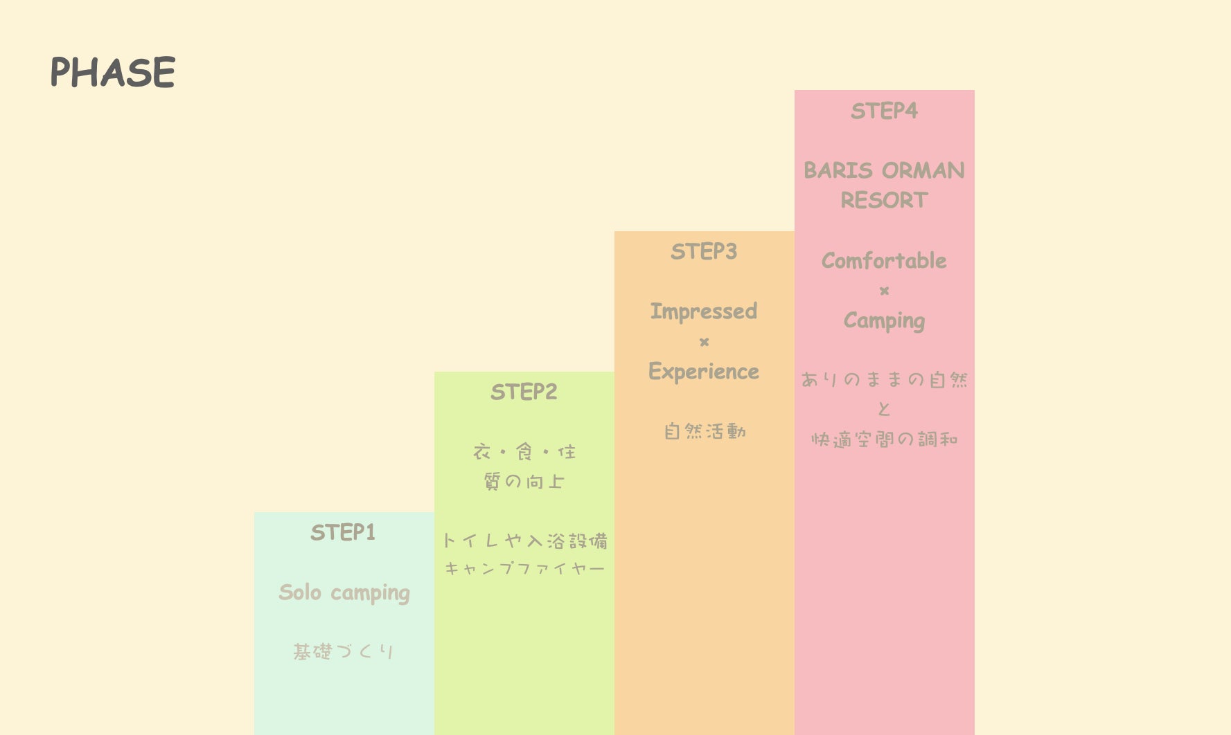 各フェーズに分けて目標設定し、『私たちのキャンプ場』を作っていく。