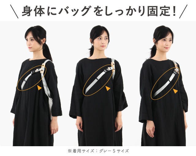 【2】特許取得のストラップにより、身体にバッグを「固定」