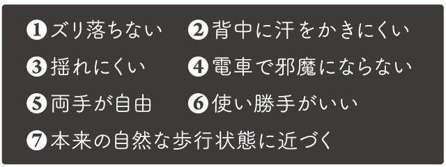 かといって、中身を取り出すのに着脱が必要なリュックや、本や書類があまり入らないメッセンジャーバッグやワンショルダーは、自分としてはイマイチ。