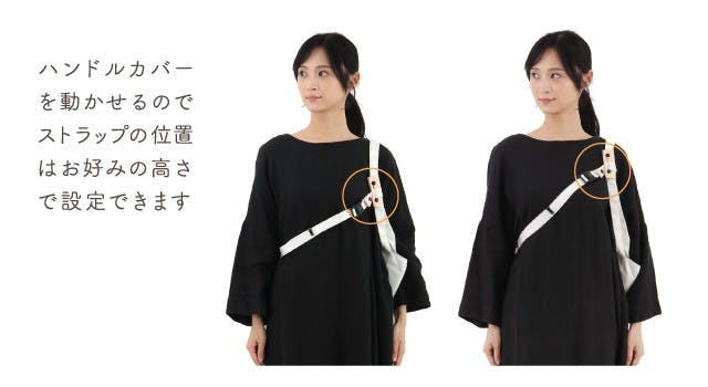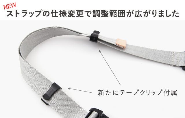 前モデルのストラップを固定するフックの仕様を廃止し、新たにハンドルカバーにストラップを固定できるようにしたことで、フィット感と使い勝手が向上しました!