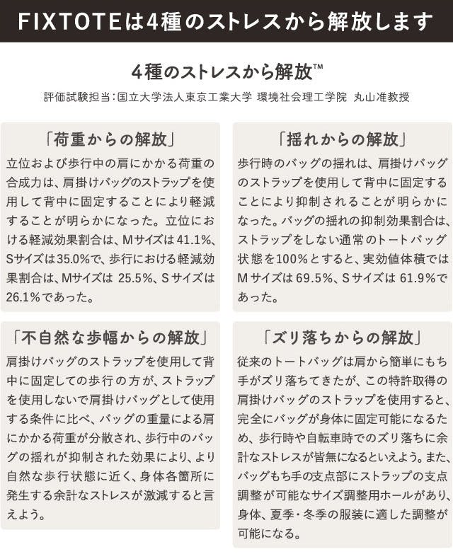 「FIXTOTE」は、ニュートンの物理学と東京工業大学の英知を駆使し、8年の歳月をかけて生まれた全く新しいトートバッグです。