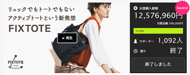 2020/11/30 11:12ご支援者の皆様この度は、「FIXTOTE プロジェクト」をご支援いただき、誠にありがとうございます。おかげさまで、112名の皆様にご支援いただき、プロジェクトが無事終了いたしました!発送は、活動レポートでもご案内しておりますが、お届け日表記に間違いがあり、明日12月1日より順次発送予定となっております。ご迷惑をおかけし、大変申し訳ございません。すべてのご支援者様への出荷完了には3~4日ほどかかる見込みです。大変お待たせしておりますが、商品到着までもうしばらくお待ちくださいませ。何卒、よろしくお願いいたします。 もっと見る100万円を突破いたしました!
