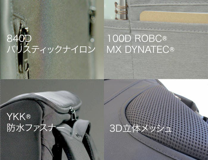 もともと軍用として開発された、耐久性の高い特殊ナイロンである「バリスティックナイロン」は、バックパックにピッタリの素材。 特長②仕事道具としての使いやすさ