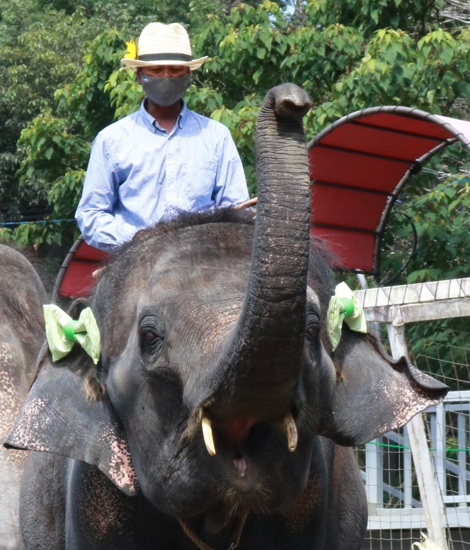 またゾウとの信頼関係が 築ける“ゾウ使い”をタイ王国から来て頂き、ゾウが安心して暮らせる環境にしています。ゾウは動物園の飼育下で繁殖、成長が難しいとされていますが、当園では2007年より5頭のゾウ達がすくすくと成長をしています。