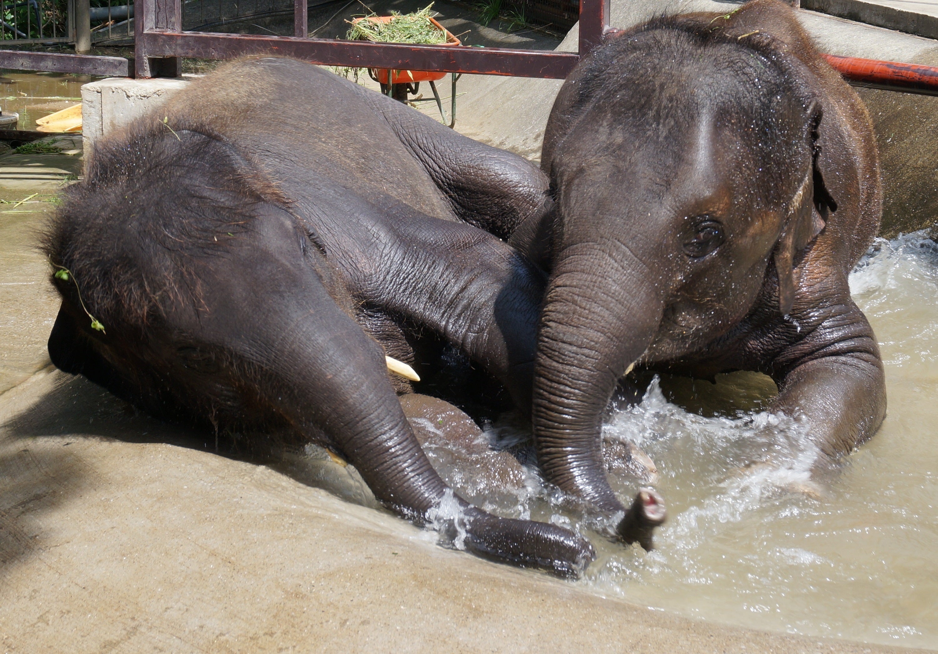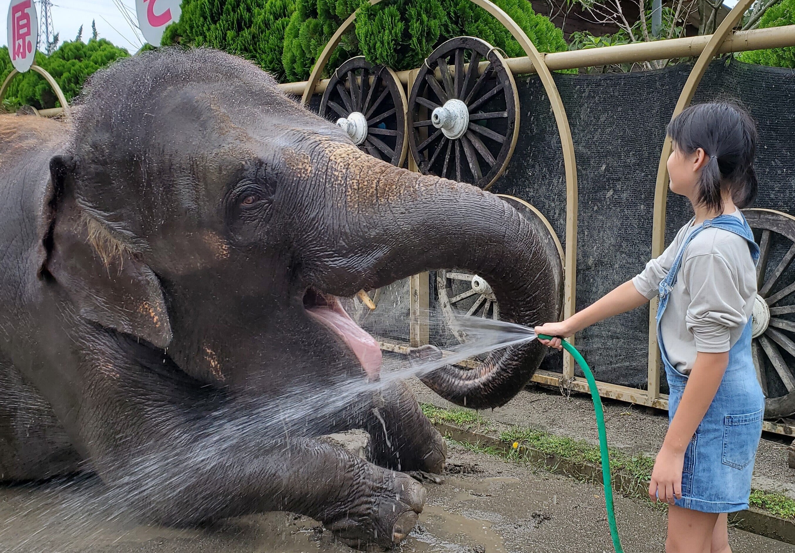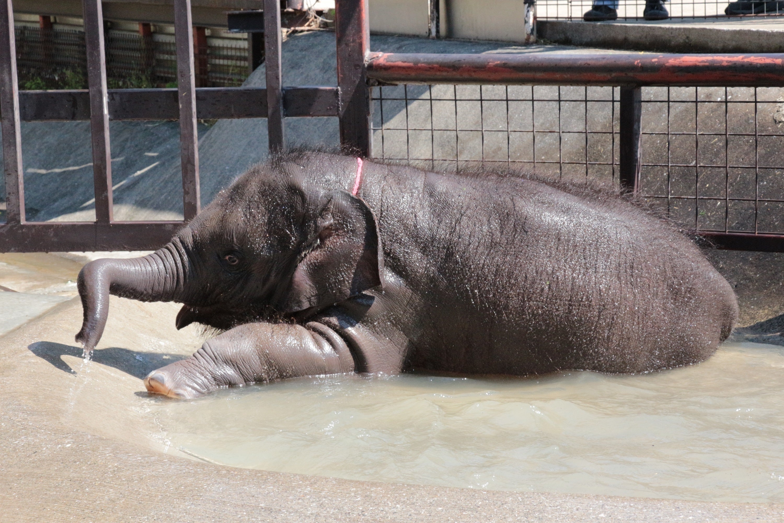 動画をご覧頂くと分かっていただけると思いますが、 ゾウは本当に水遊びが大好きです。 日本生まれ日本育ちの希少な「自然哺育」で育った当園の「ゆめ花(13歳)」 が、将来母ゾウとなり、子ゾウと一緒に水遊びをしている姿を多くの方に見て頂きたいと願っています。