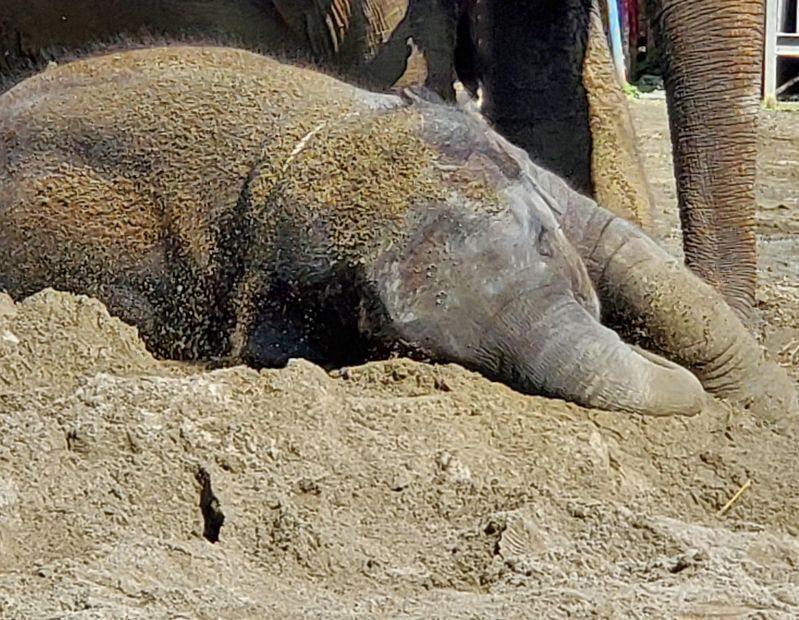 当園で18年暮らしている「プーリー」は、「ゆめ花」「りり香」「もも夏」のお母さんであり「結希」の乳母です。テリーとプーリーとマミーは、同じインドの自然保護区からきた幼なじみのぞうさん達です。乳離れした子達でも何かびっくりする事があると必ずプーリーの元に駆け寄る姿をみる時があります。お母さんの傍が一番安心するのは人と同じ感情がある証かもしれません。