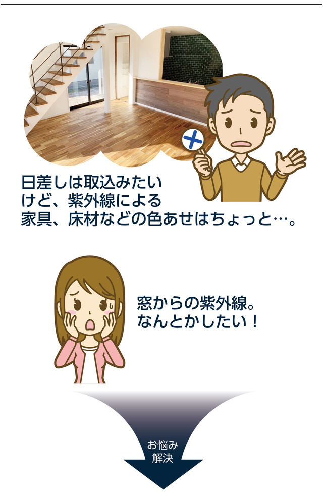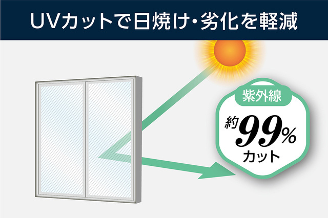 悪影響を及ぼすと言われる紫外線を99%カットします!家具やフローリング、カーペットや製品などの日焼けや劣化を軽減!