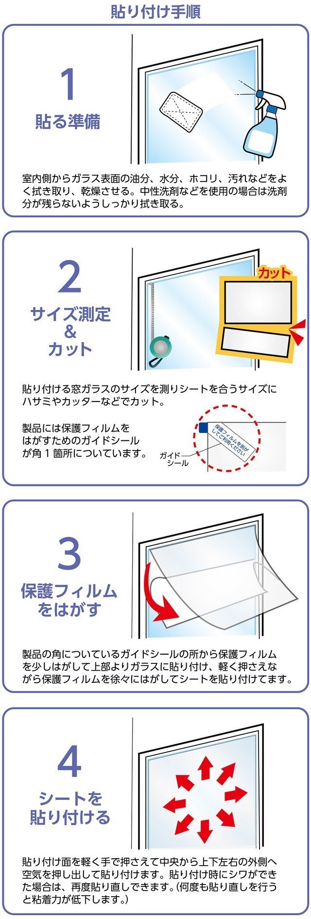 粘着タイプなので窓全体への貼り付けが簡単!