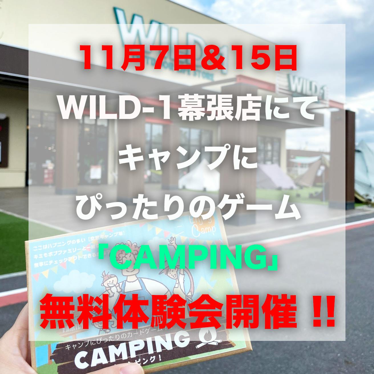 この度WILD-1幕張店さんにてCAMPINGの体験会を実施させていただけることになりました!