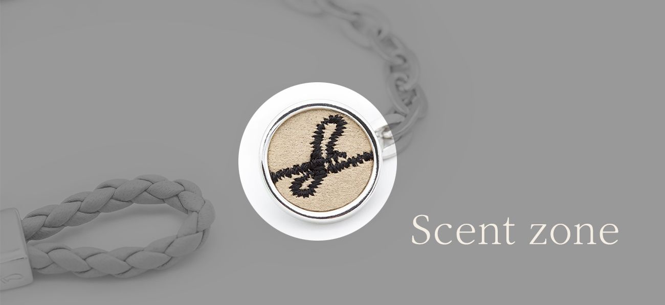 ロゴが刻まれた Scent Zone(セントゾーン)に香水を2-3回吹き付けてください。ほのかな香りが3日ほど持続します。