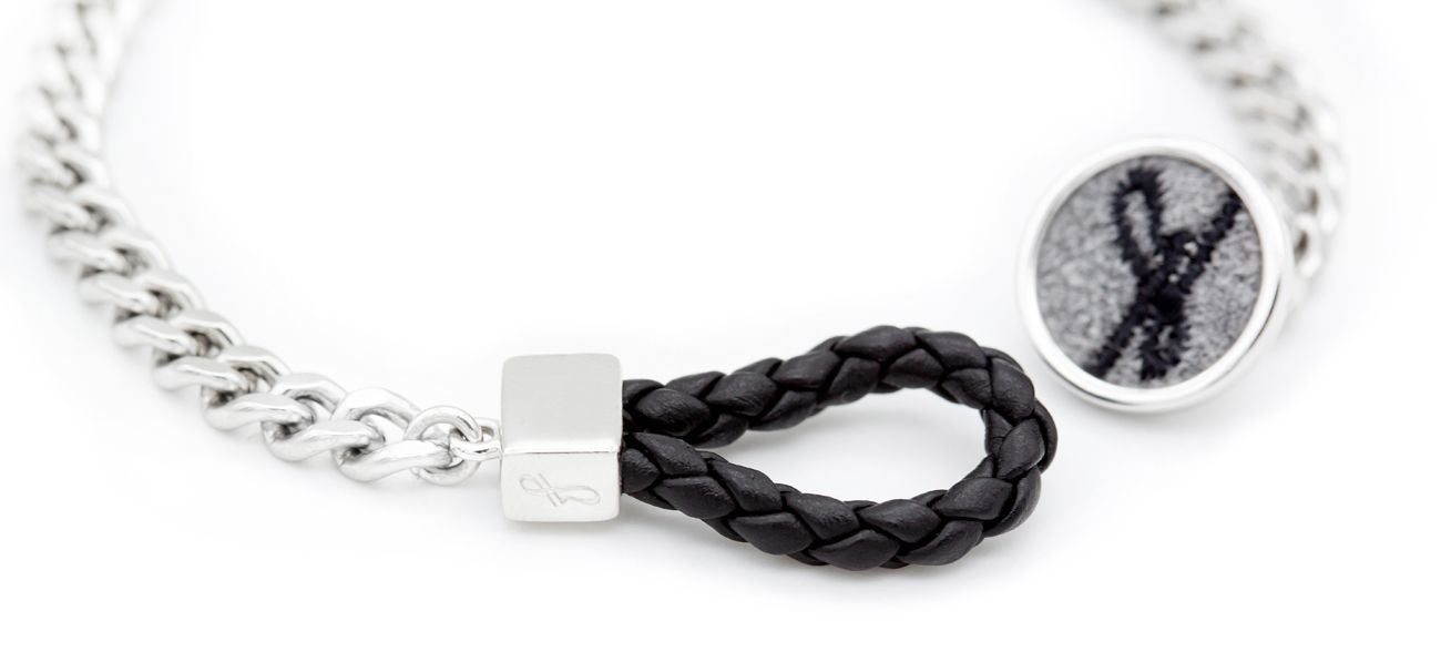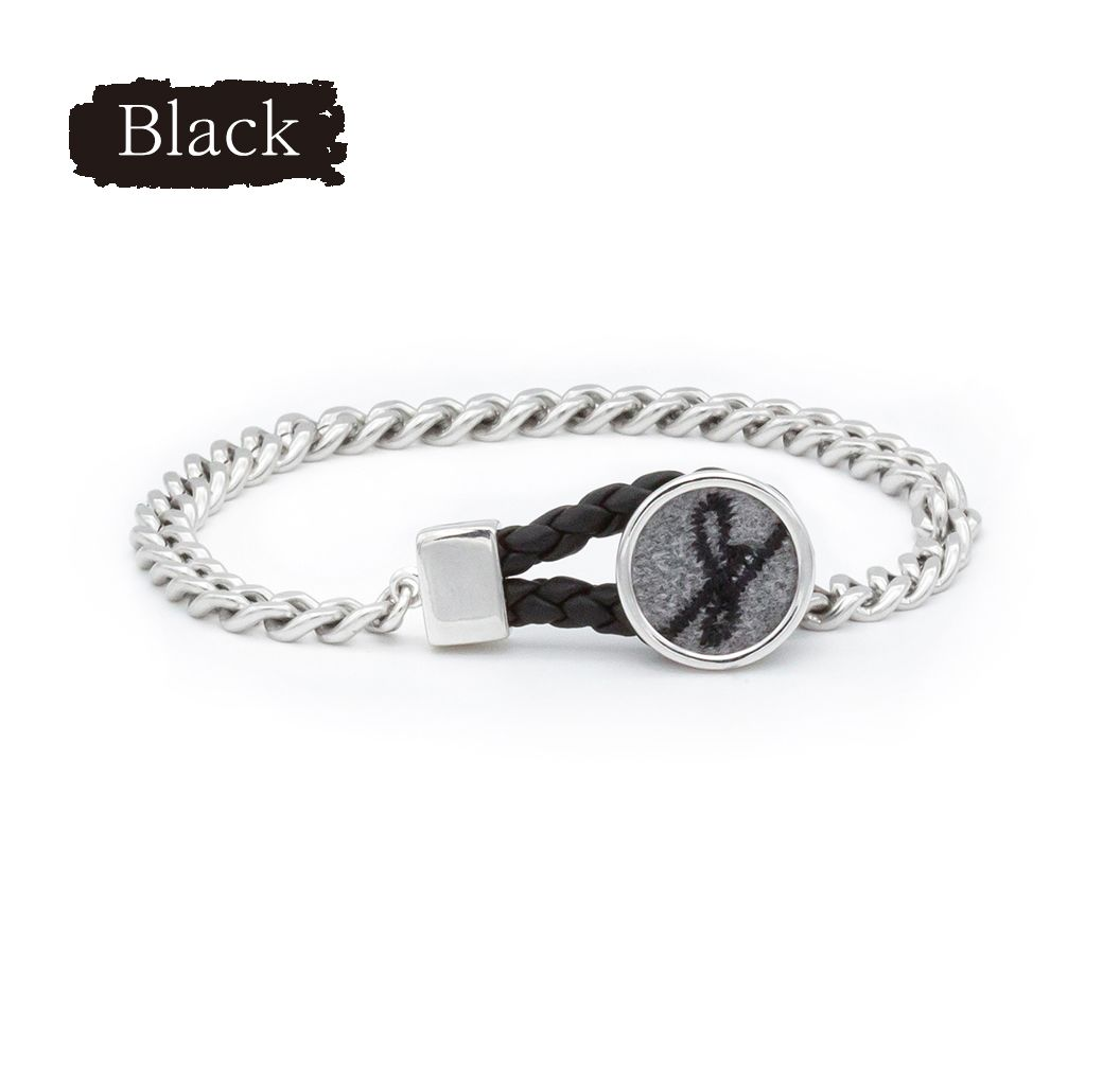 サージカルスチールのチェーンと天然牛革を使用し高級感あふれるデザインに仕上げました。