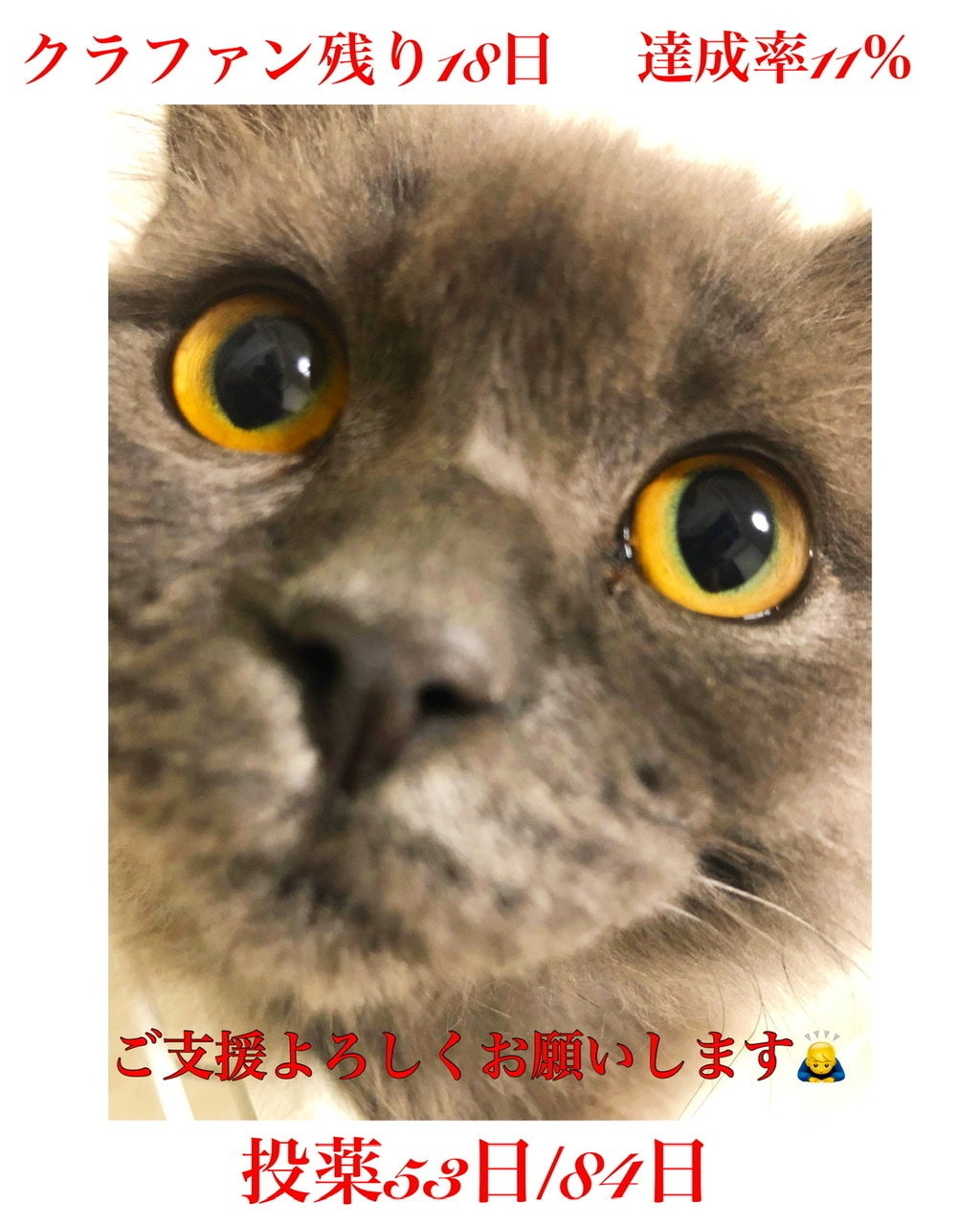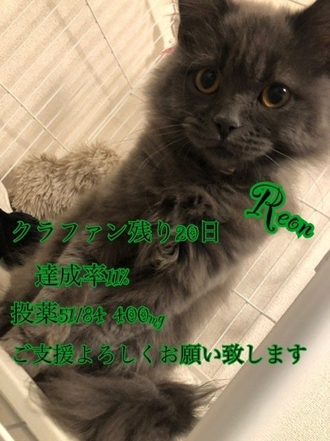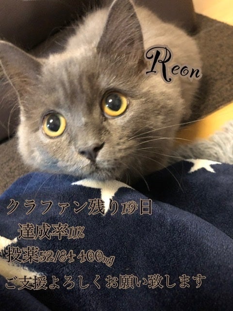 投薬52日/84日MUTIAN:400mg体重1.8kg食欲◎尿◎便◎2回 元気◎そして明日はレオンのハーフバースデー!!あっという間すぎる(^^)クラファン残り19日 達成率11%銀行振込でのご支援も可能です!!SNS(Instagram、Twitter)にもレオンの投薬について載せていますので是非見てください(´∇`)Instagram→reon___510Twitter→Reon___510どうか皆様のお力を貸してください、、よろしくお願いしますm(_ _)m