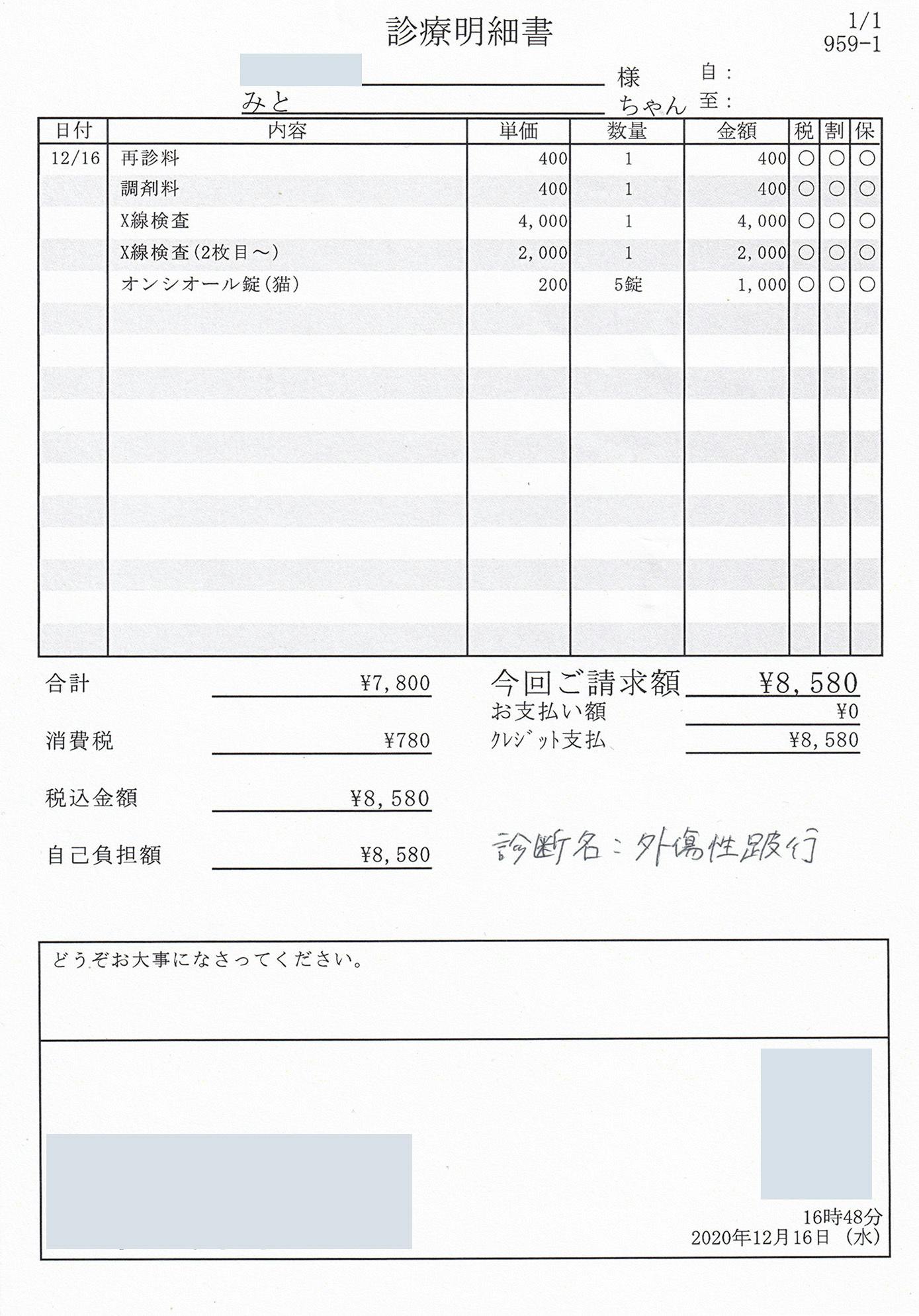 (うんちがうっすら見えてて可愛い)また、食欲と元気もあるのでFIPの再発で神経症状が出ているわけでもなく、診断名としては外傷性跛行と診断され、痛み止めのお薬を貰いました。診断してもらい、一安心することができました(*´˘`*)!
