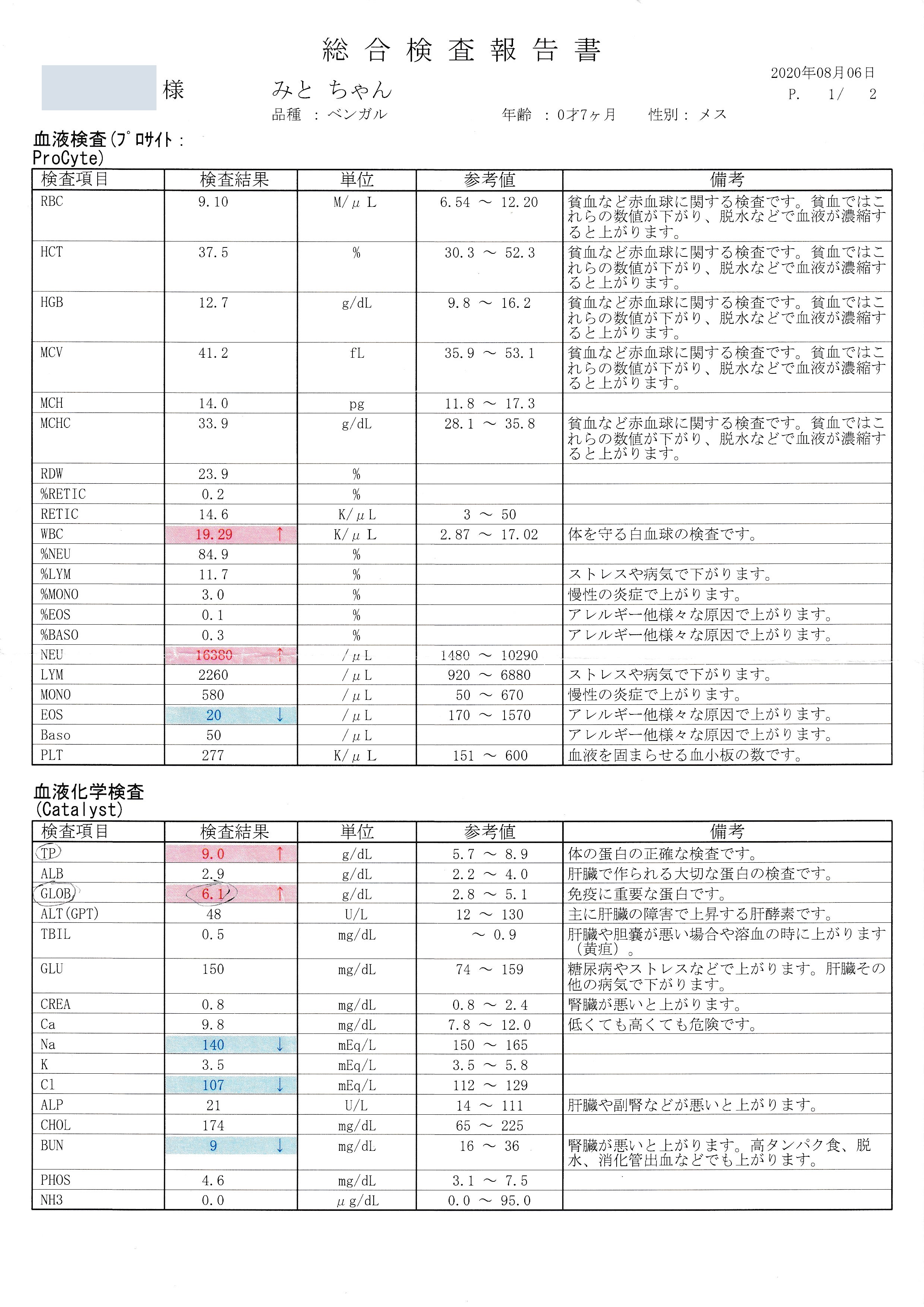 次の診察の予定は8月15日で、FIPと判断できる項目の血液検査とエコーもしてもらうことになりました。