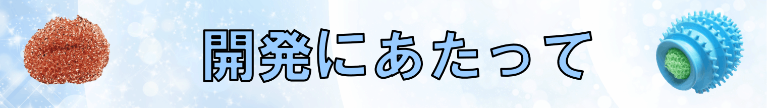 ウレタンポーチや色々な形のボールで試作し、材質や形状等、様々な工夫・検討を行い、現在の「洗濯クリーンボール」が誕生しました。