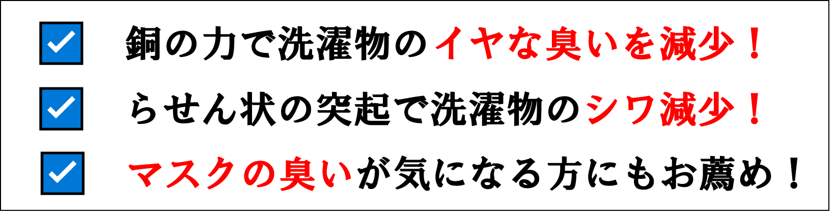 【ポイント1:銅の力で洗濯物のイヤな臭いを減少!】