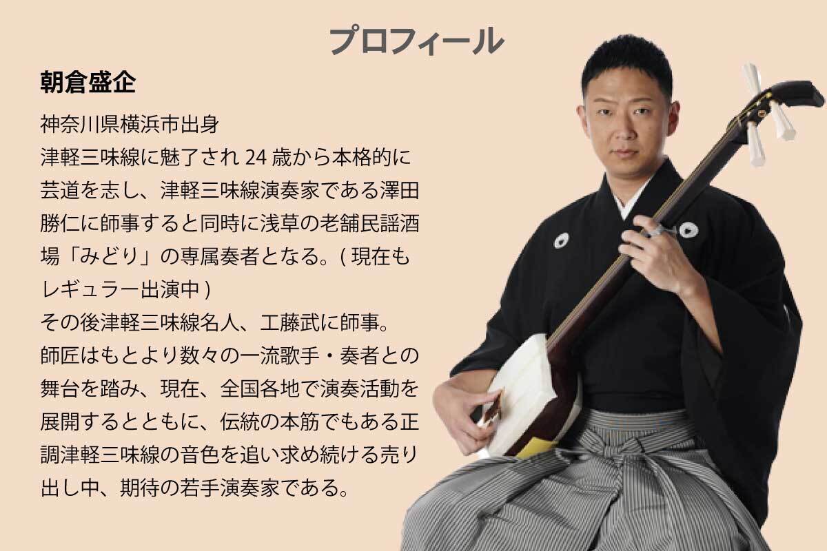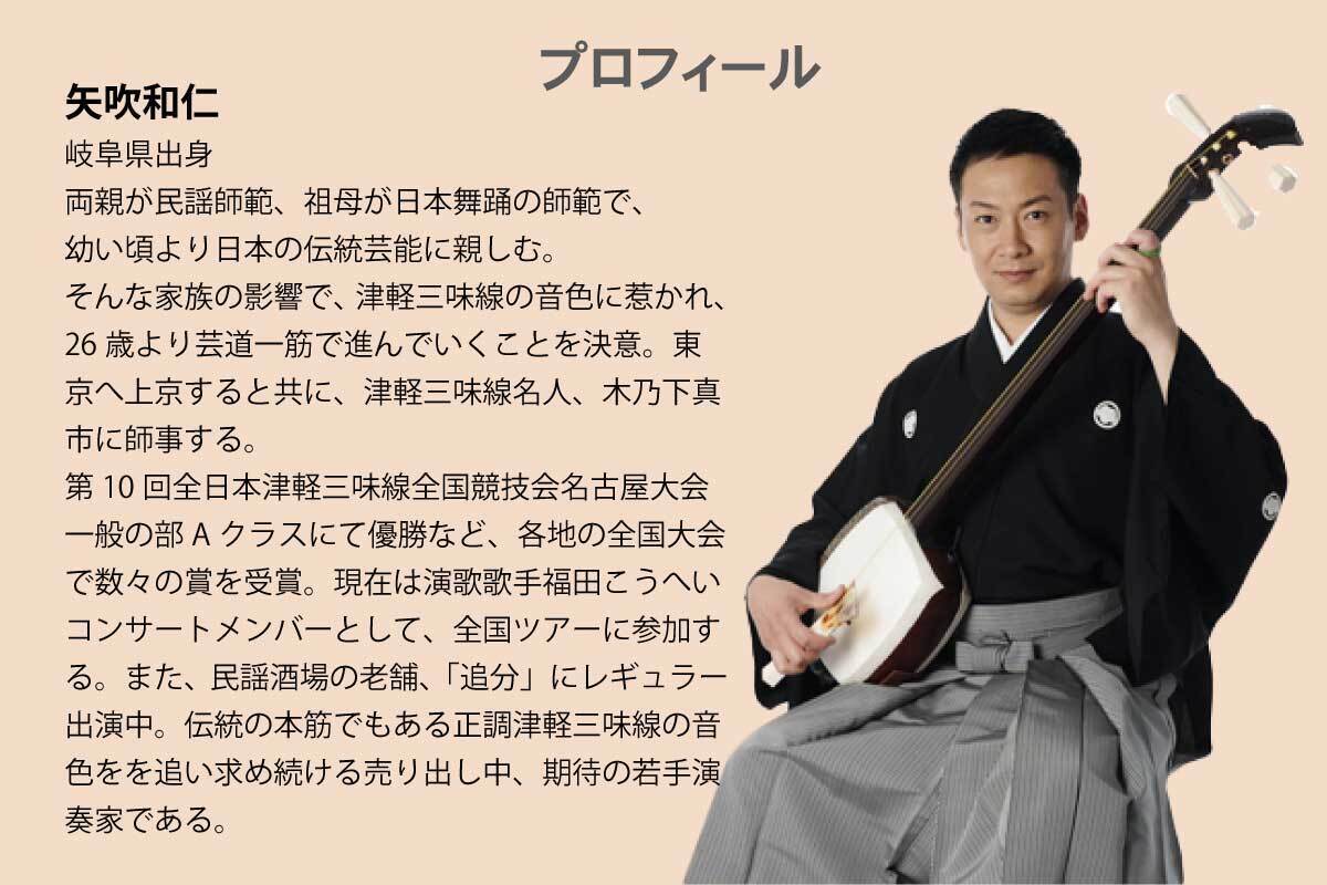 - 2021年以降に行う「矢吹和仁×朝倉盛企」による津軽三味線ライブのご招待チケットをお届けします。
