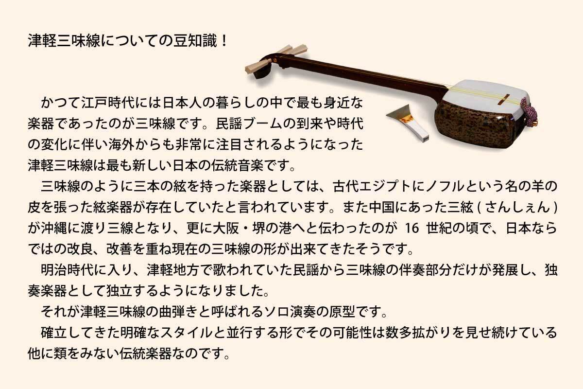 私たちが生まれる前から師匠達が受け継いできた本物の芸をこのコンサートを通して更に私たちも受け継いでいけるようにとの想いと、それを津軽三味線や津軽民謡が大好きな方々へお届けしたいという強い気持ちを持っています。