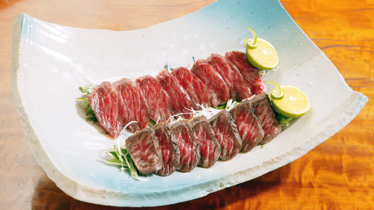 ▲郷土伝承の食文化、黒毛和牛の旨みがギュッと詰まった一夜干し「干し肉」