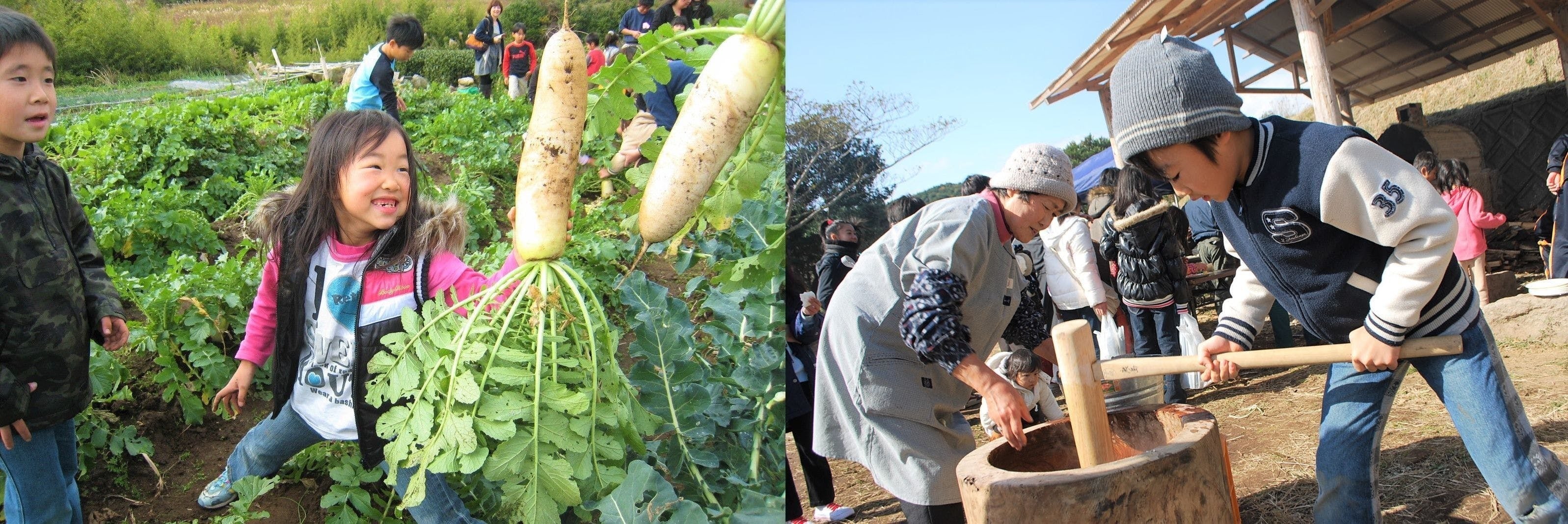 周りは、鳥や虫の鳴く声、集落のおじいちゃんたちの作業中の草刈りの音がするくらいとても静かで、1日の時間がとてもゆったりと流れています。子どもたちが自然の中でのびのび過ごし、お父さんやお母さんと一緒に農業や自然体験をするのにはもってこいの環境です。
