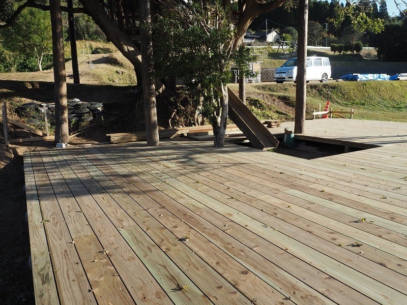 2020/12/15 16:49こんにちは。今週に入り、日中の気温が上がらず、寒い日が続いています。さて、ウッドデッキ整備の作業が着々と進み、ツリーハウスのの下段部分のウッドデッキがほぼ完成しました。次は、上の段部分にデッキが出来、はしごでつなぐ構想です。先日、広場に遊びに来ていた子どもたちも「早く出来てくれないかぁ。遊びたいなぁ」と楽しみにしてくれていました。募集終了まであと7日。今までご支援、応援してくださった方、本当にありがとうございました。引き続き、応援よろしくお願いいたします。 もっと見る