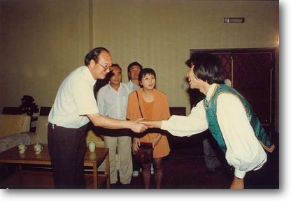 岩瀬よしのりとワンステップ(旧岩瀬よしのりと鬼剣舞)は、1993年中国内蒙古自治区文化庁の招待により首都都市呼和浩特(フフホト)で戦後日本人初の公演を行いました。また、中国国立内蒙古歌舞団と友好協定を結び、馬頭琴の最高峰であるチ・ボラグ氏を日本に招聘するなど交流は今も続いています。また、2002年にも中国南京市において「平和交流コンサート」を行いました。