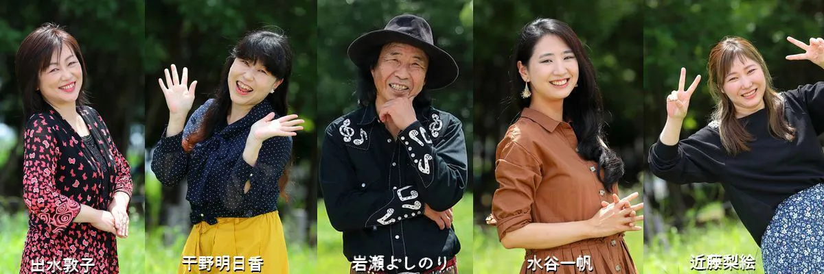 代表/岩瀬よしのりは作曲家としても活動しています。代表作として原爆詩人/峠三吉の原爆詩集に作曲した「構成詩曲 にんげんをかえせ」や「原爆被爆者証言組曲 虹の碑・母子像」(作詩/増岡敏和)、戦没詩人/竹内浩三の詩に作曲した「竹内浩三の世界」があります。